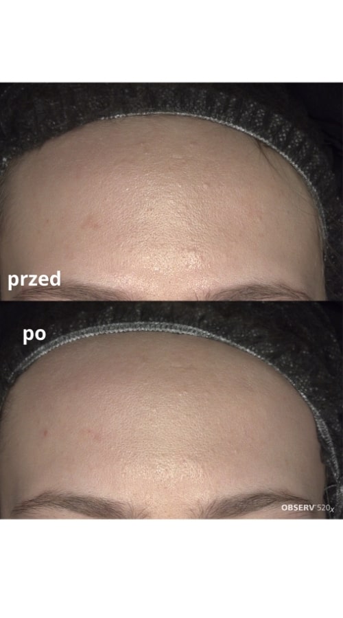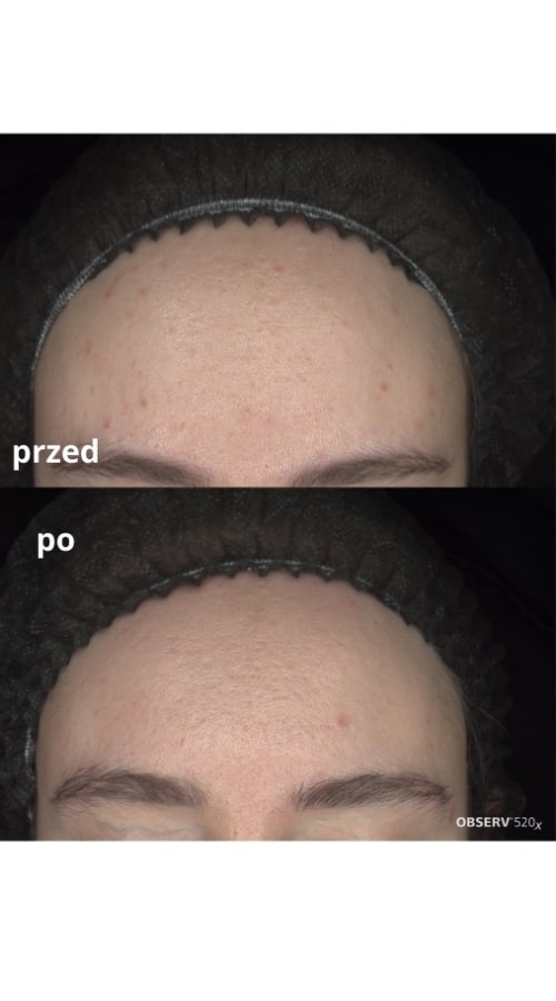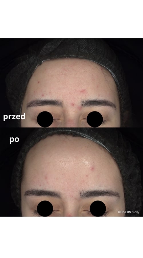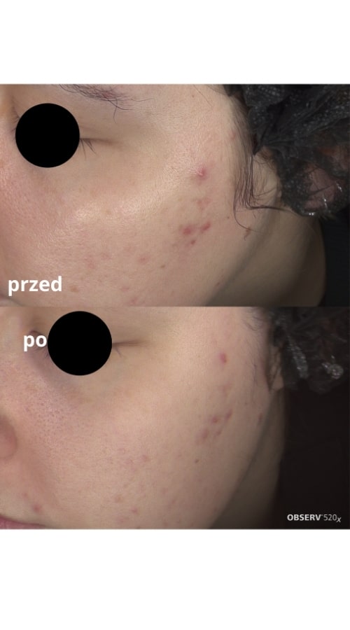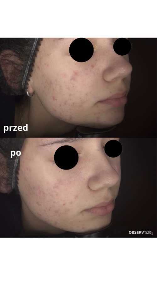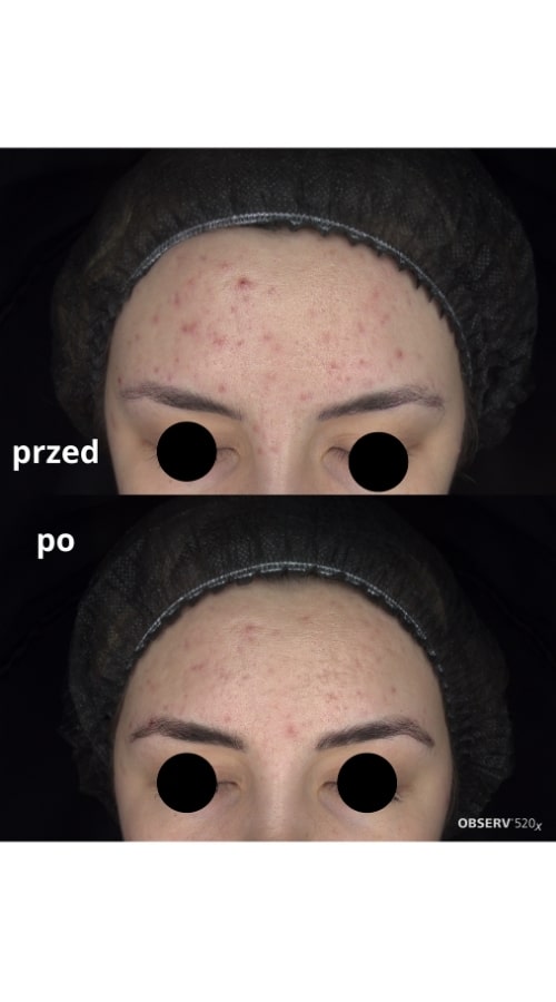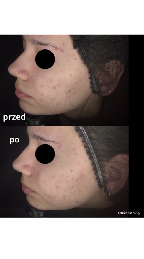 Redukcja liczby zmian trądzikowych potwierdza skuteczność terapii i jest wypadkową zmian parametrów wykazanych podczas pomiarów.