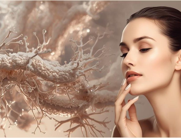 Estrogeny pełnią kluczową rolę w regulacji aktywności fibroblastów, syntezy kolagenu oraz integralności macierzy pozakomórkowej. Po menopauzie obserwuje się gwałtowny spadek produkcji kolagenu (nawet do 30% w pierwszych 5 latach), ścieńczenie skóry i pogorszenie organizacji włókien.